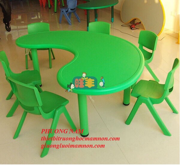 HOTLINE : 02866754995Bàn nhựa đúc hình bán nguyệt thường được dùng trong các trường mầm non, trường mẫu giáo, trung tâm tiếng anh cho bé,....
