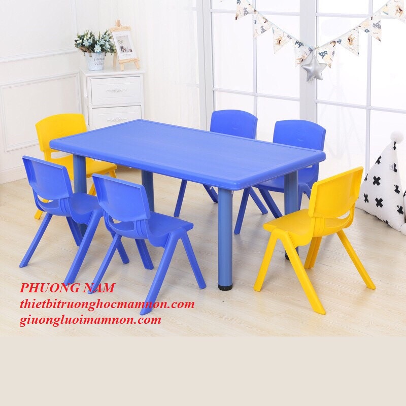 Bàn hình chữ nhật có các màu cơ bản như: xanh lá, xanh dương, vàng, đỏ