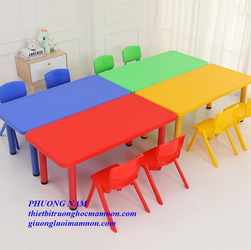 Bàn hình chữ nhật có các màu cơ bản như: xanh lá, xanh dương, vàng, đỏ