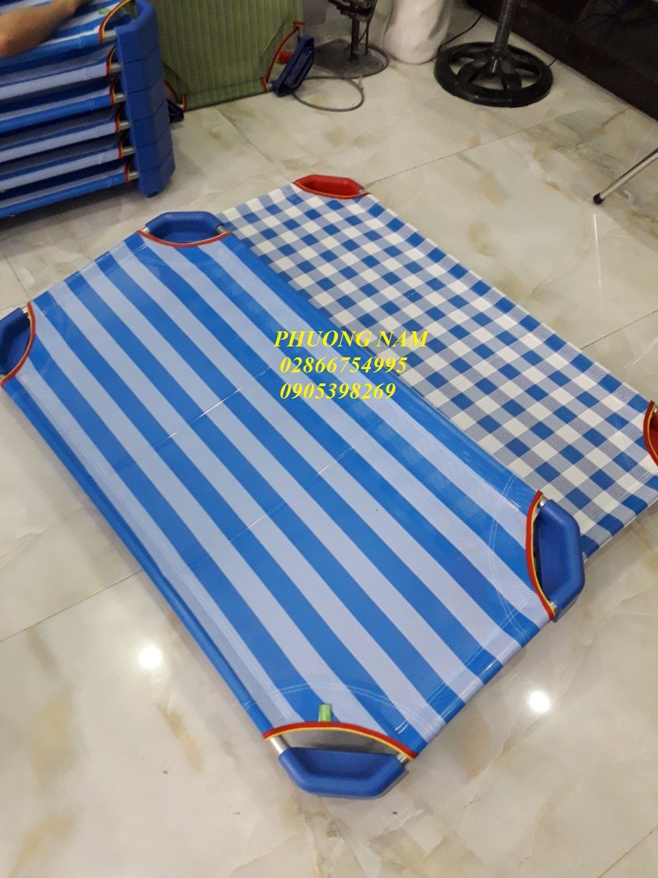 Vải giường lưới được làm từ lưới textilene phủ nhựa, không thấm nước, thoáng mát, an toàn cho trẻ.