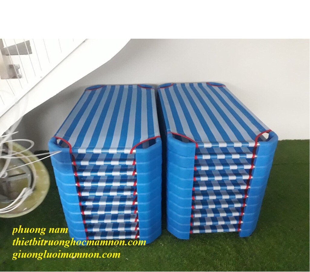 Đặc biệt hơn giường lưới dễ dàng xếp chồng lên nhau sau khi sử dụng
