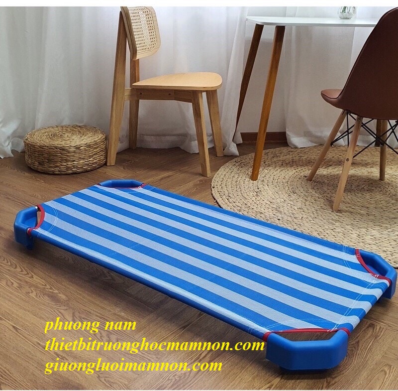 Giường lưới mầm non là sản phẩm được rất nhiều nhóm trẻ và trường mầm non sử dụng. Mặt lưới được làm từ các sợi nhựa lưới bọc nhựa PVC rất thoáng và mang lại cảm giác rất dễ chịu khi bé nằm. Khung giường được làm bằng sắt mạ kẽm. Bên dưới giường lưới còn được gia cố bằng 2 thanh inox 304 đảm bảo cho giường không bị chùn.