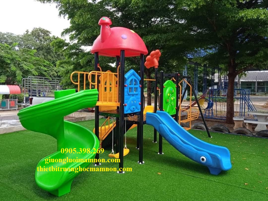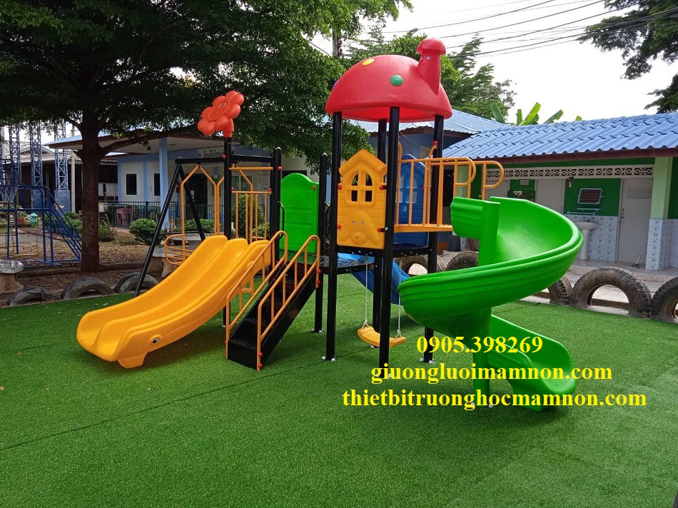 HOTLINE : 02866754995Cầu trượt liên hoàn là trò chơi vận động liên hoàn cho trẻ em. Giúp trẻ vừa vui chơi và vận động phát triển thể chất. Các trò chơi gồm: máng trượt đơn, ống chui, máng trượt xoắn, xích đu,...