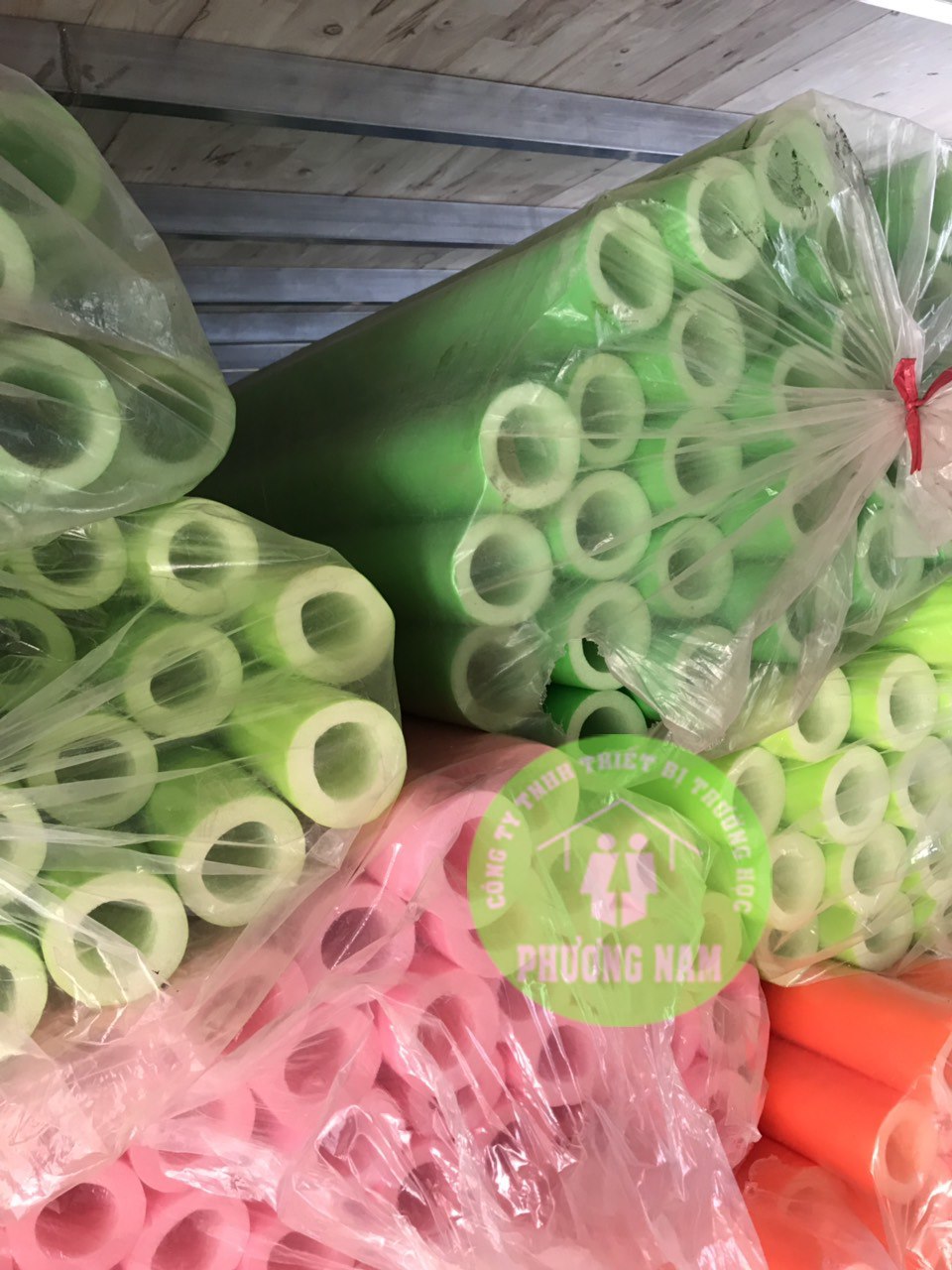 Ống xốp có nhiều màu sắc như: xanh lá, xanh dương, trắng, vàng, hồng, đỏ, cam,....