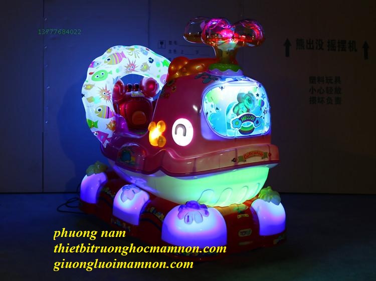 Thú nhún điện kèm 100 xu miễn phí, được lập trình sẵn mỗi xu chạy 3 phút, tích hợp máy nghe nhạc MP3 để khách hàng cắm thêm thẻ nhớ