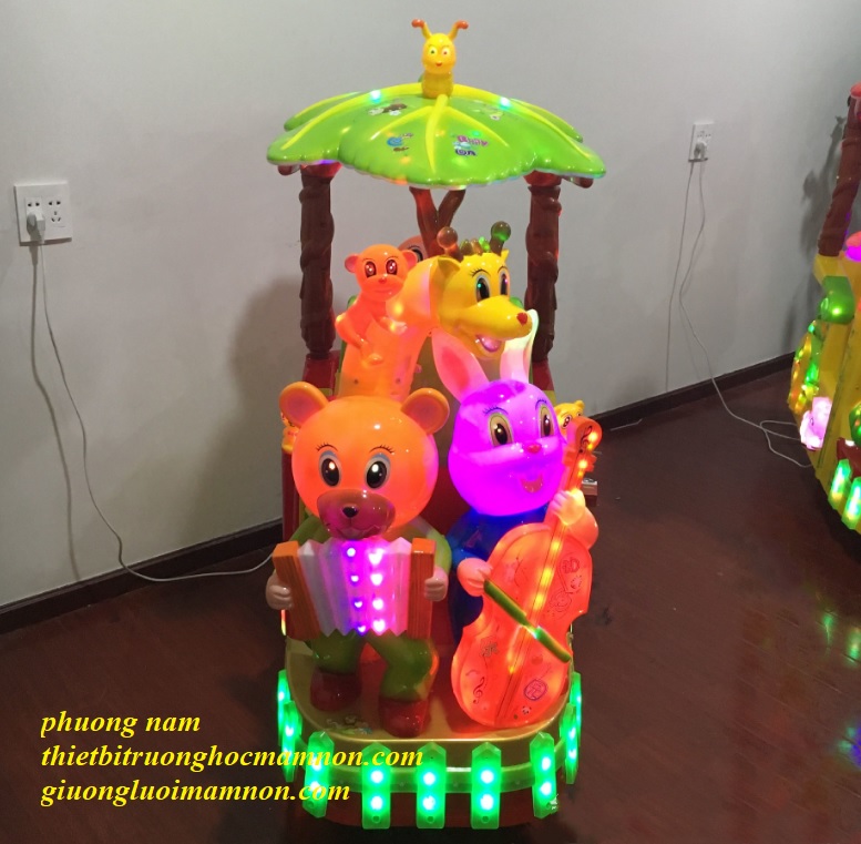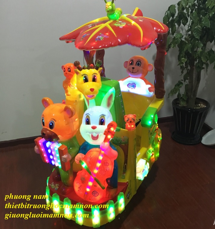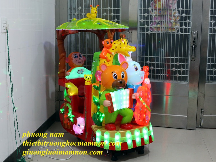 Thú nhún điện kèm 100 xu miễn phí, được lập trình sẵn mỗi xu chạy 3 phút, tích hợp máy nghe nhạc MP3 để khách hàng cắm thêm thẻ nhớ