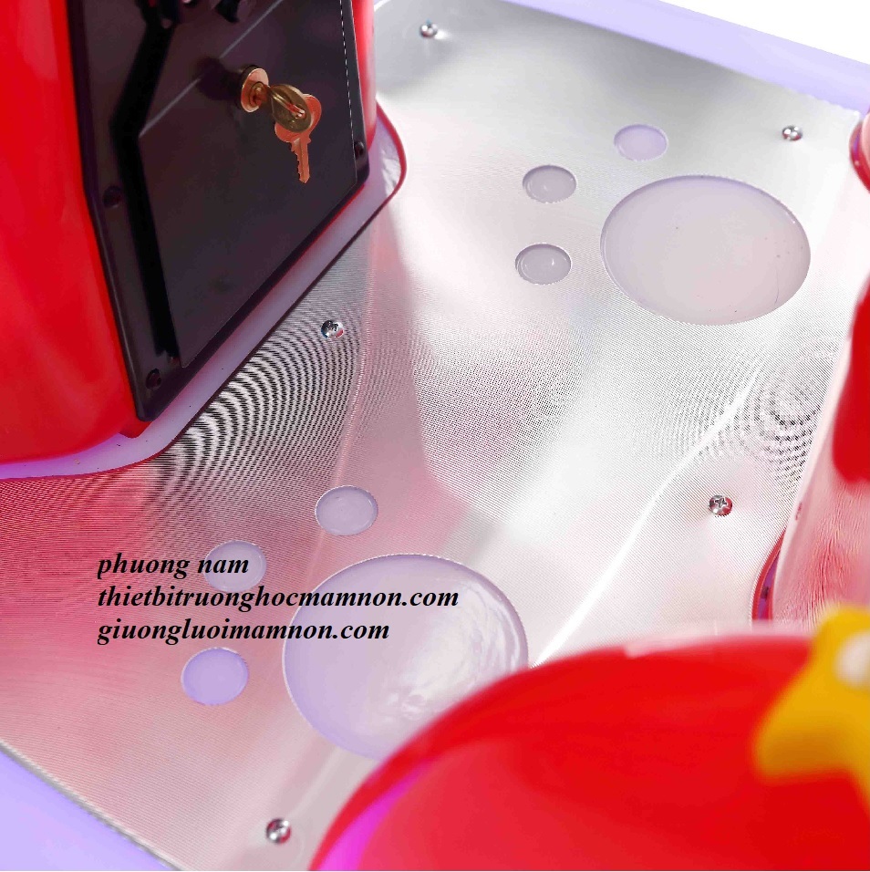 Sản phẩm làm từ nhựa nguyên sinh nhập khẩu cao cấp, sản xuất theo tiêu chuẩn xuất khẩu châu Âu, với hệ thống cơ nâng và bánh răng hợp kim làm tăng tuổi thọ sản phẩm lên gấp 5 lần so với nhún thông thường. Sản phẩm cài sẵn các bài hát Tiếng Anh