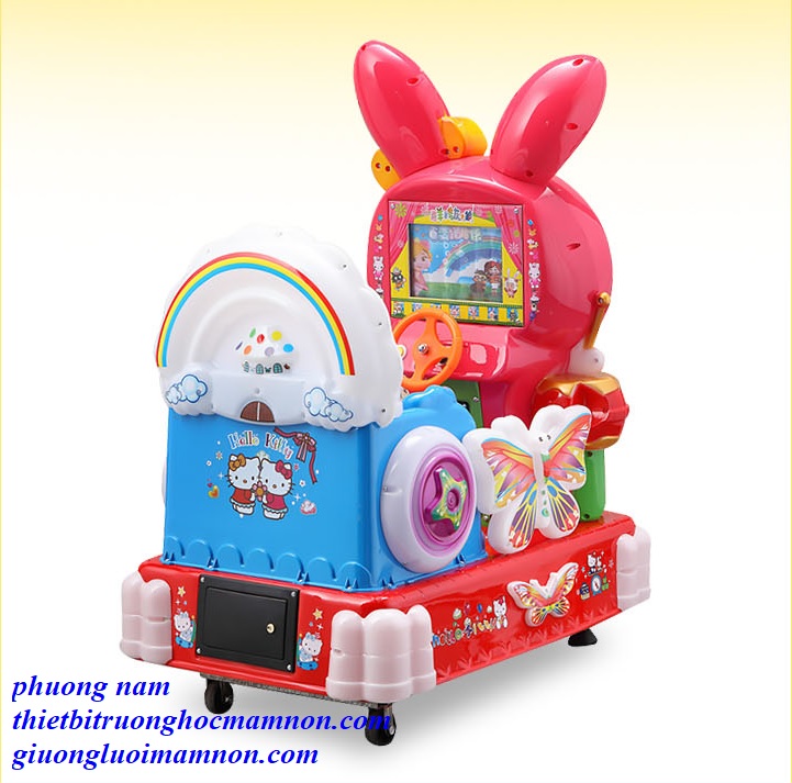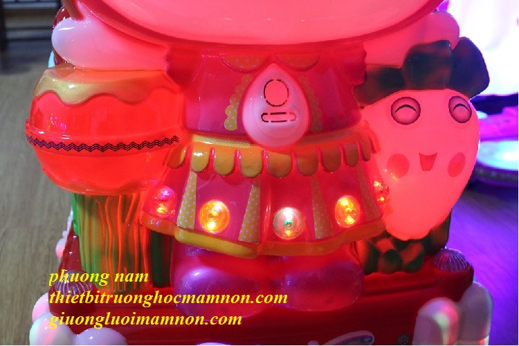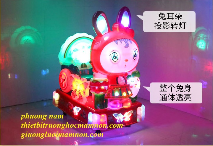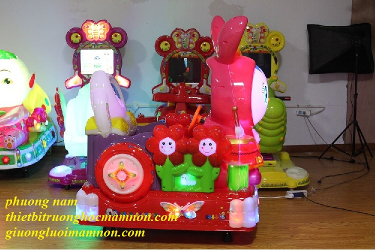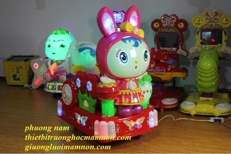 Thú nhún điện kèm 100 xu miễn phí, được lập trình sẵn mỗi xu chạy 3 phút, tích hợp máy nghe nhạc MP3 để khách hàng cắm thêm thẻ nhớ nếu muốn thêm các bài hát khác
