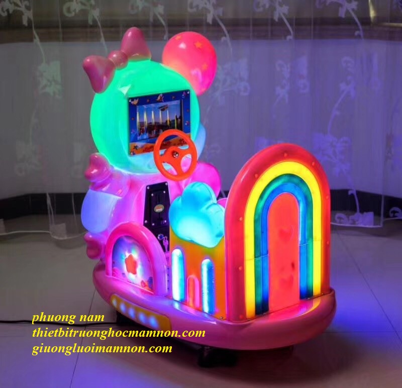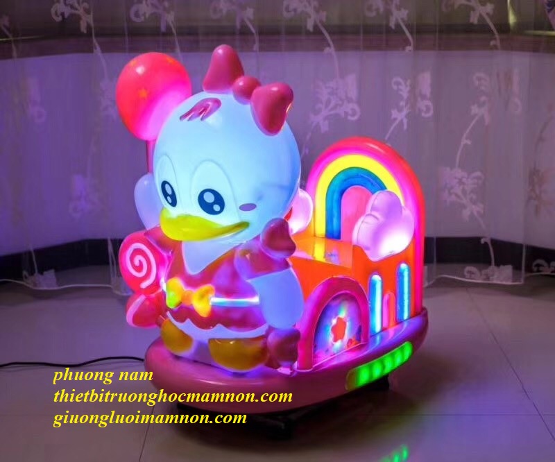 - Thú nhún điện kèm 100 xu miễn phí, được lập trình sẵn mỗi xu chạy 3 phút, tích hợp máy nghe nhạc MP3 để khách hàng cắm thêm thẻ nhớ